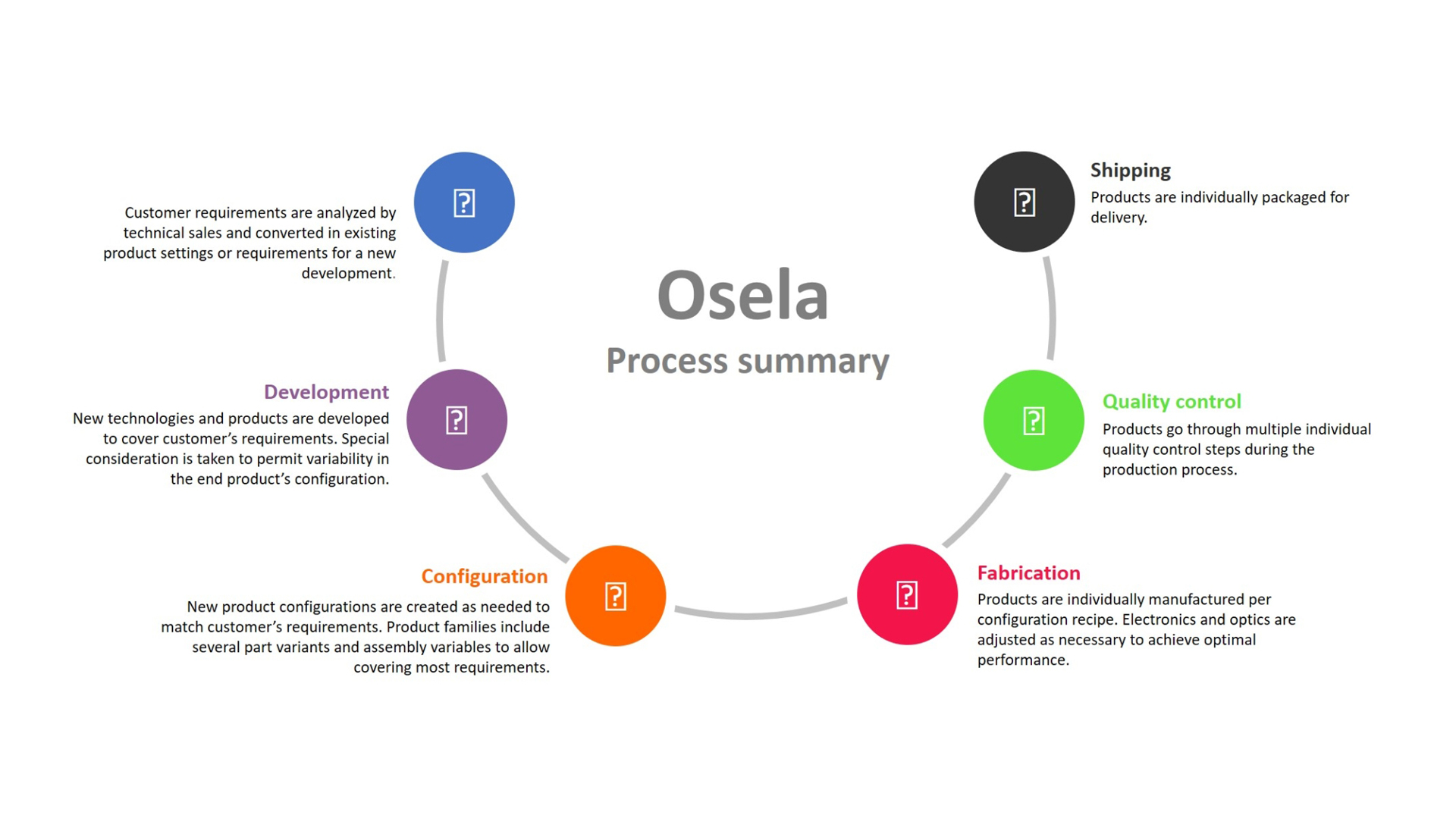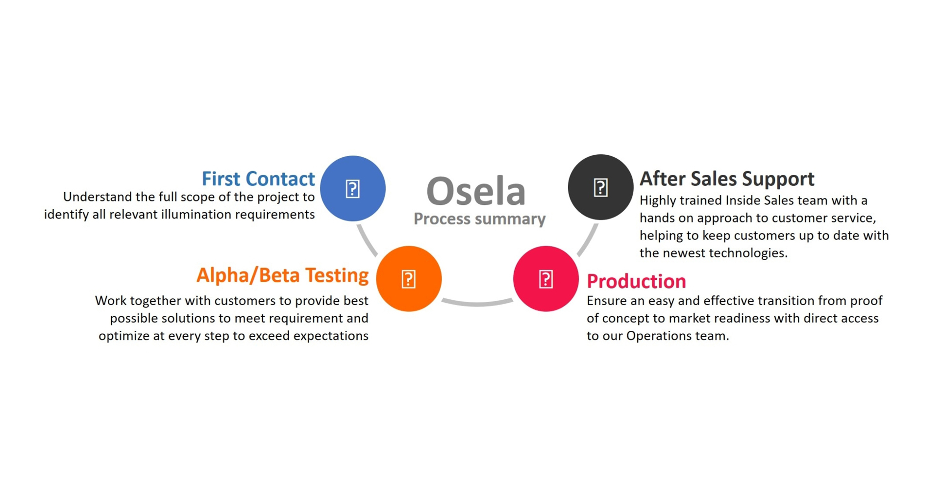Le nom Osela dérive du mot OSEL, signifiant lumière en tibétain. L’entreprise se concentre fortement sur les systèmes d’illumination laser pour des applications en vision industrielle, biosciences, inspection industrielle et instrumentation. Notre équipe hautement qualifiée, avec de nombreuses années d’expérience dans l’industrie, possède l’expertise photonique nécessaire pour assister nos clients dans le développement d’applications à forte intensité optique.