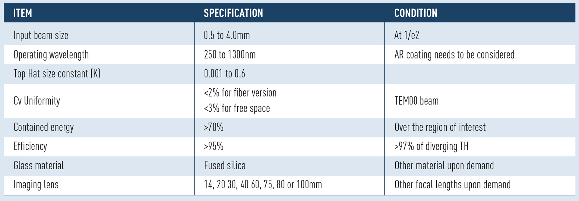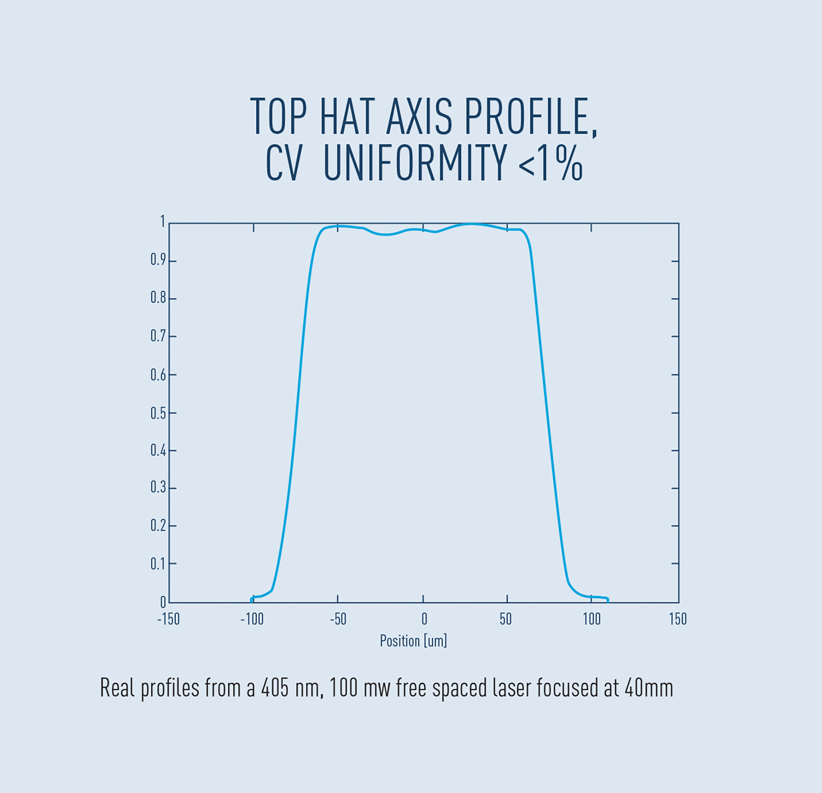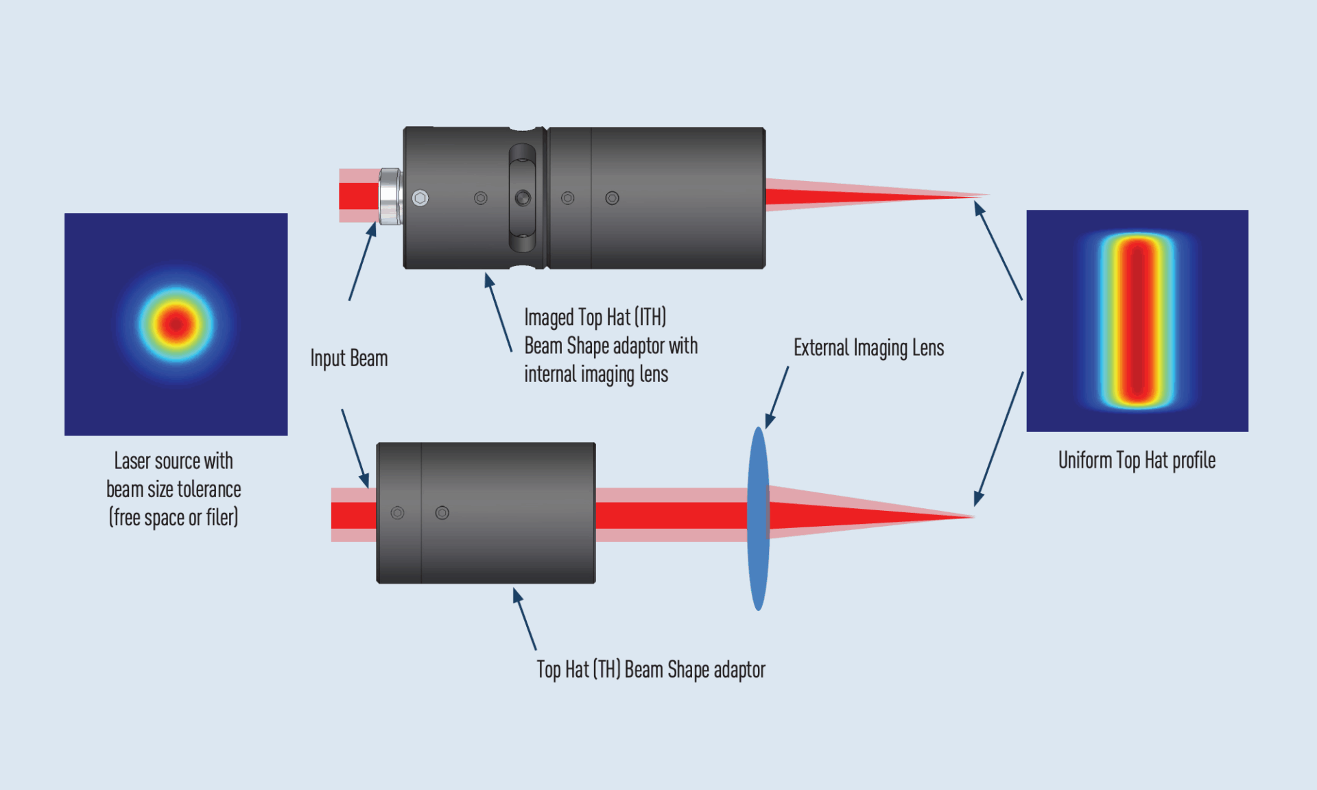 Convertit un faisceau laser gaussien en profil top hat avec haute uniformité, haute efficacité sans bruit haute fréquence dans un module compact flexible.