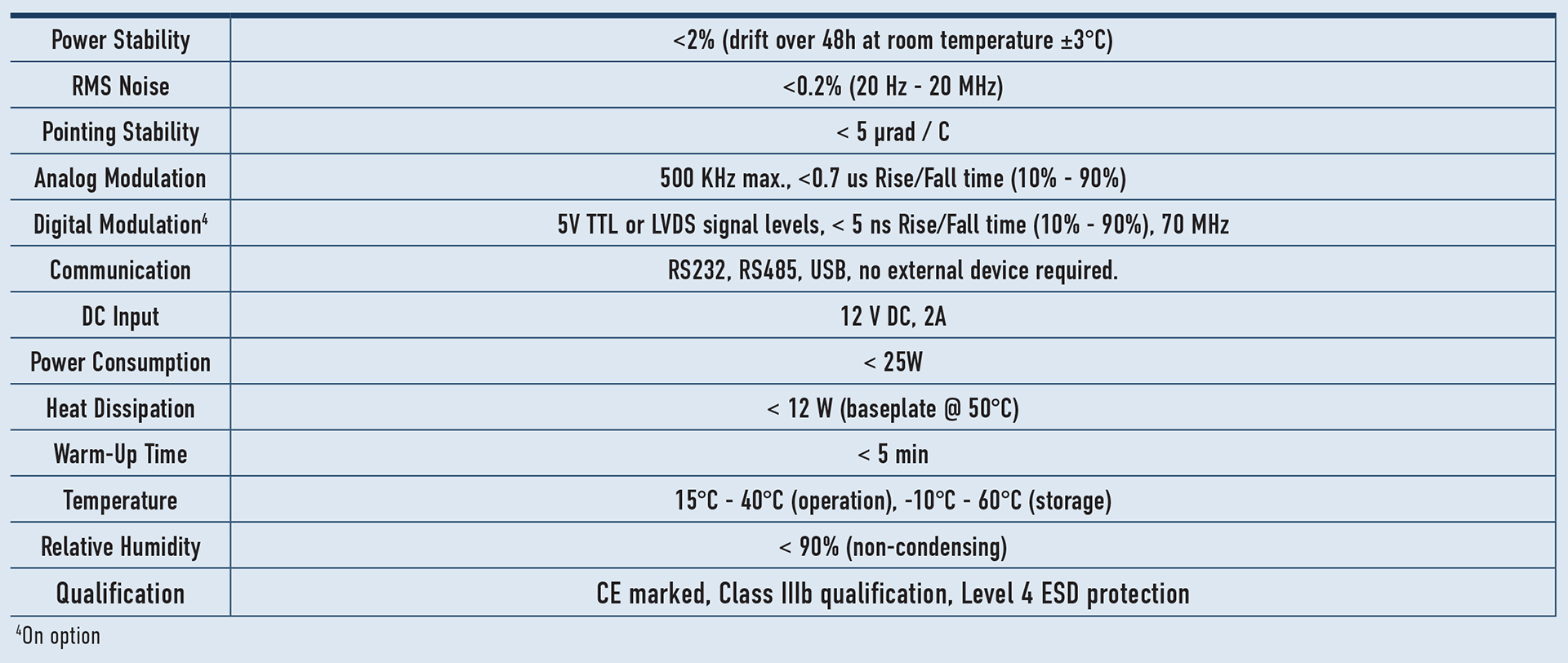 - All glass AR coated optics providing high transmission efficiency