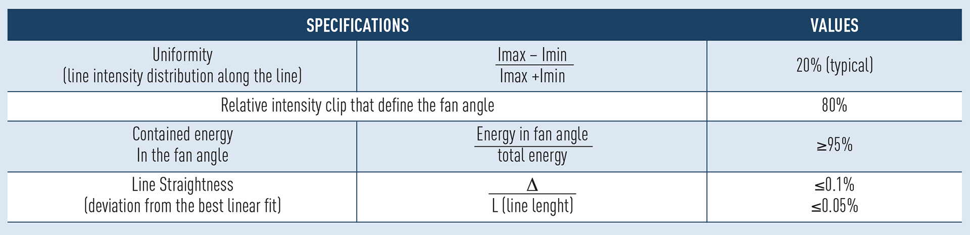 Telecentric micron thin line projector for high precision 3D structured lighting inspection applications.